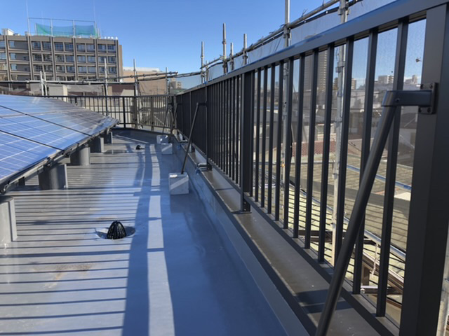今回はお打ち合わせの結果屋上手摺り交換と共に外壁塗装、屋上防水工事、階段シート張替え工事、等施工させていただきました。また当社の方で火災保険及び地震保険の申請もサポートさせていただきかなりの金額が保険会社さんから振り込まれ、お客様もお喜びになられていたので当社としてもご協力させていただき大変うれしく思います。