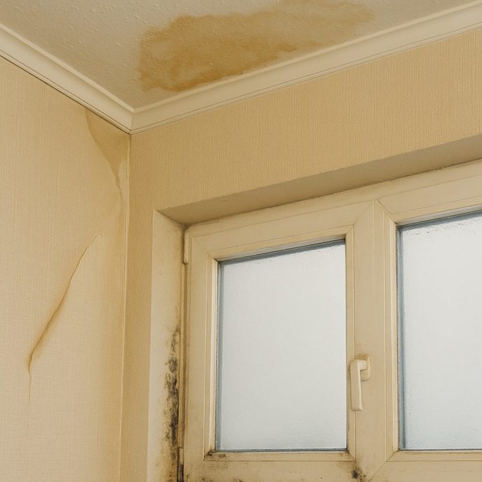 これは屋根や外壁から侵入した雨水が、天井裏や壁の内部を通って染み出してきたサインです。シミが拡大している場合、すでに内部の木材や断熱材が水分を含んでいる可能性があります。